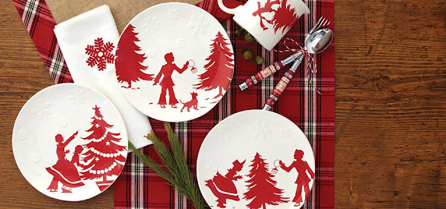 It's December 1st, and that means it's time to get out my Christmas dishes! This year I added to my collection - look at these cute "Yuletide" Victorian silhouette plates I found at Cost Plus World Market!!! If you've followed my blog very long, you may know I love the art of silhouette.